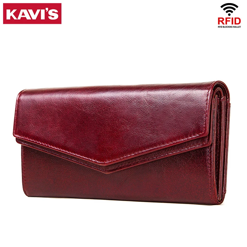 New Product KAVIS High capacity Genuine Leather Wallet Female Coin Purse Women Portomonee Clutch Clamp Money Ba